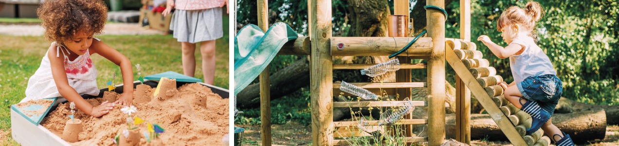 Plum's philosophy is that toys should stimulate children's creativity and imagination. Plum therefore produces playground equipment that is rich in play options where fun is paramount. This philosophy is certainly reflected in the Plum Discovery series, including the Plum Mud Pie Kitchen. Plum also has an extensive collection of sandpits and sand and water tables. Playing with sand and water is always different, creative and never boring! If you want a real playground, there are Plum swing sets and complete playground equipments.