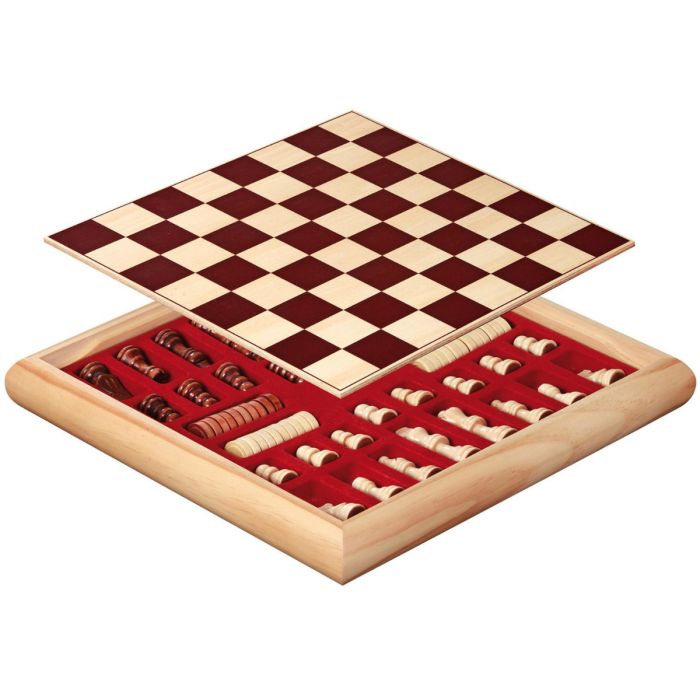 Philos Chess-Checkers set wooden box 32x32